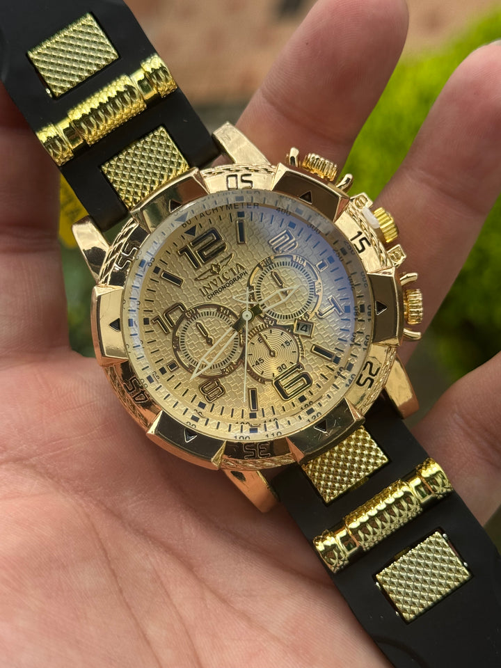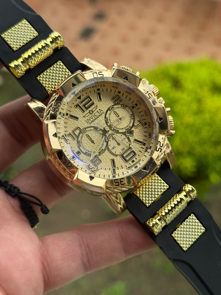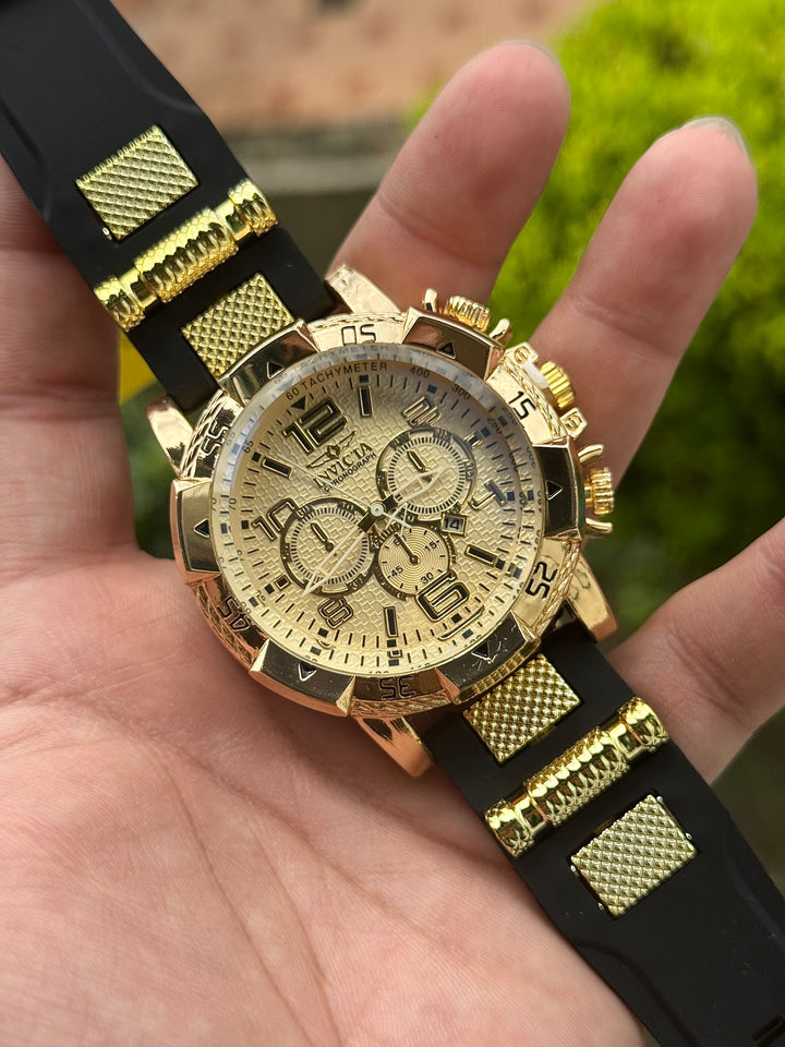 ⌚ Reloj Invicta Dorado Deportivo con Pulso en Silicona Negra