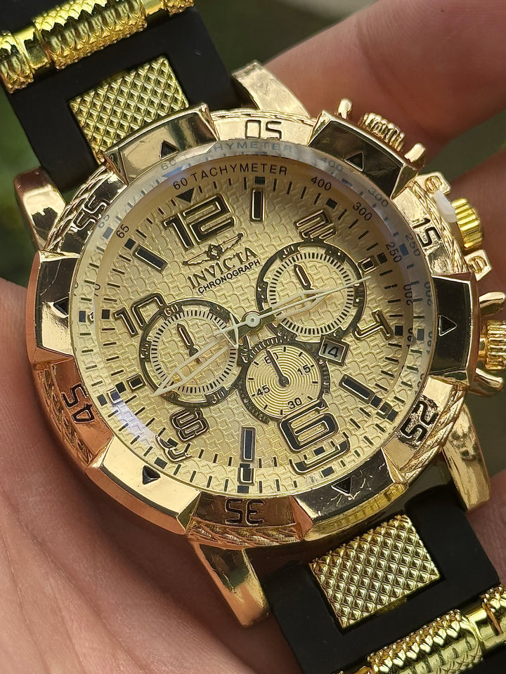 Este Invicta dorado es el favorito de los hombres con estilo fuerte y decidido.