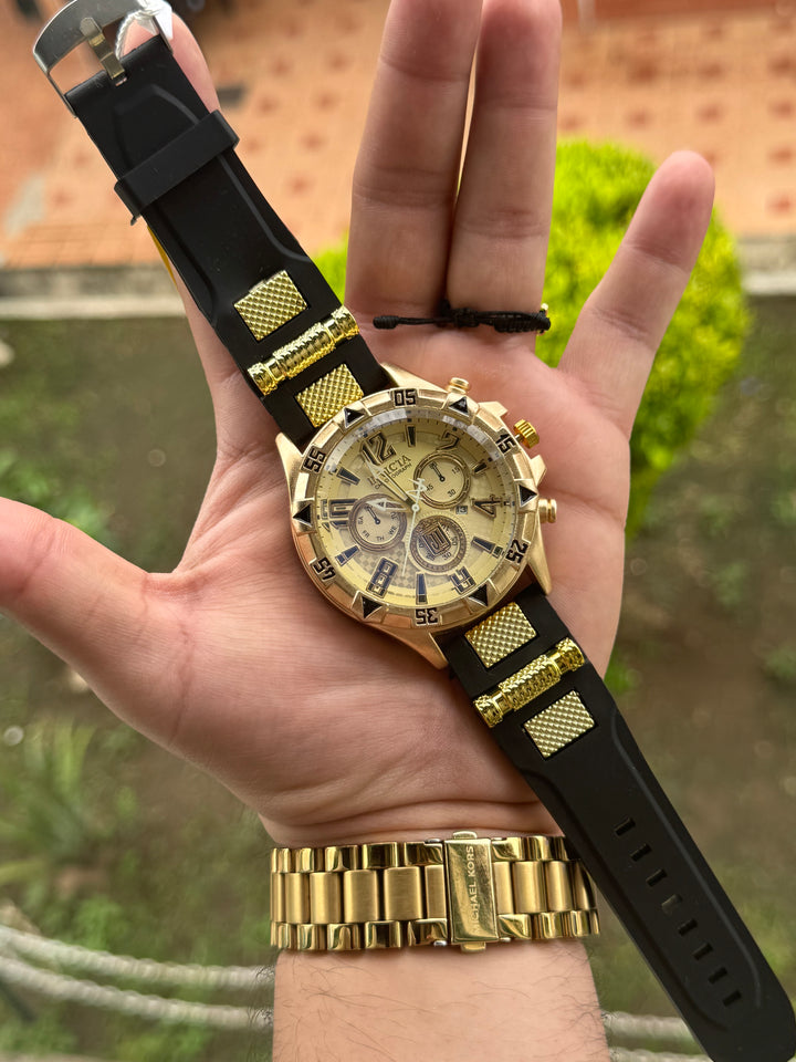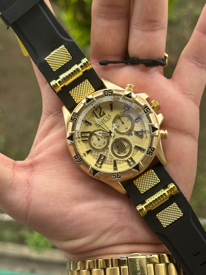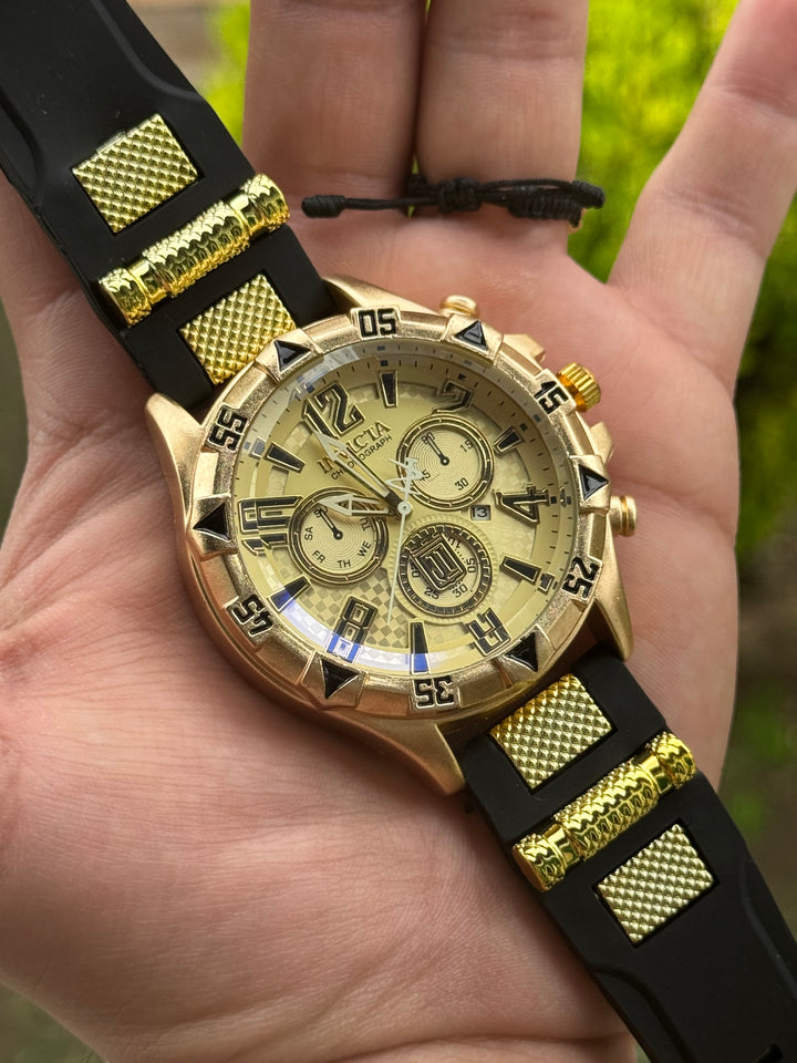 ⌚ Reloj Invicta Dorado Deportivo con Pulso en Silicona Negra
