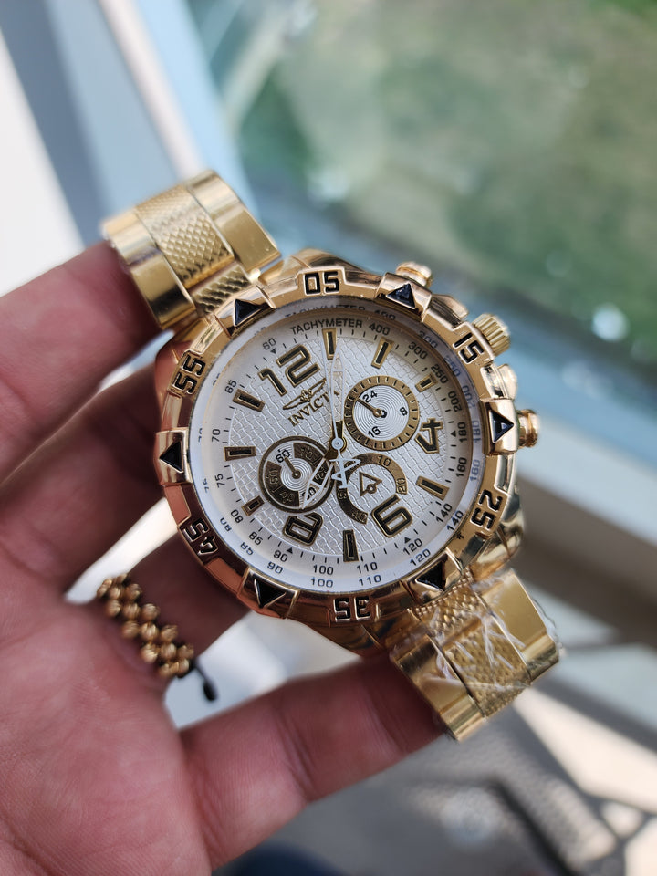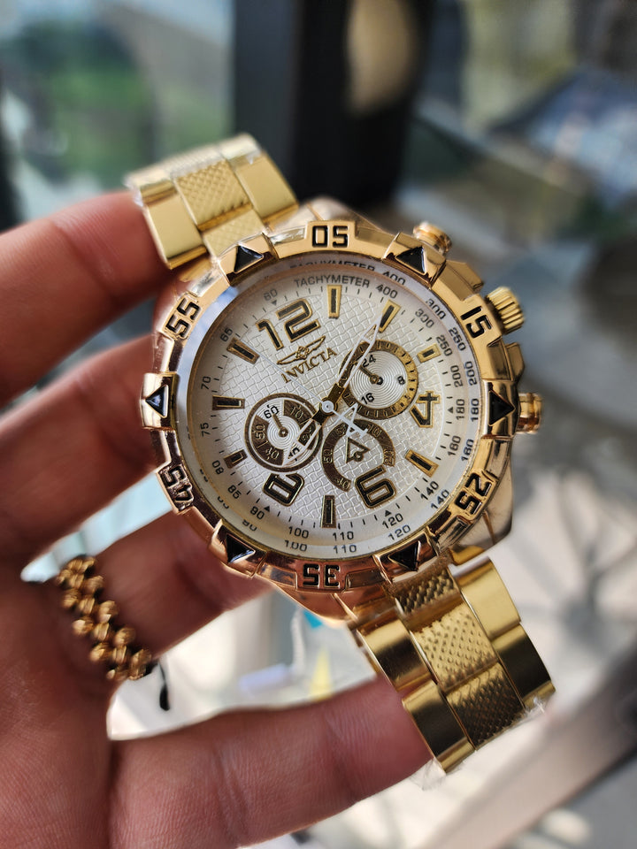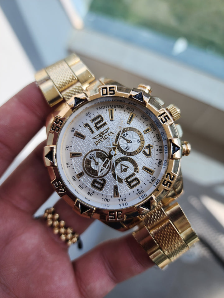 Este Invicta dorado es el favorito de los hombres con estilo fuerte y decidido.