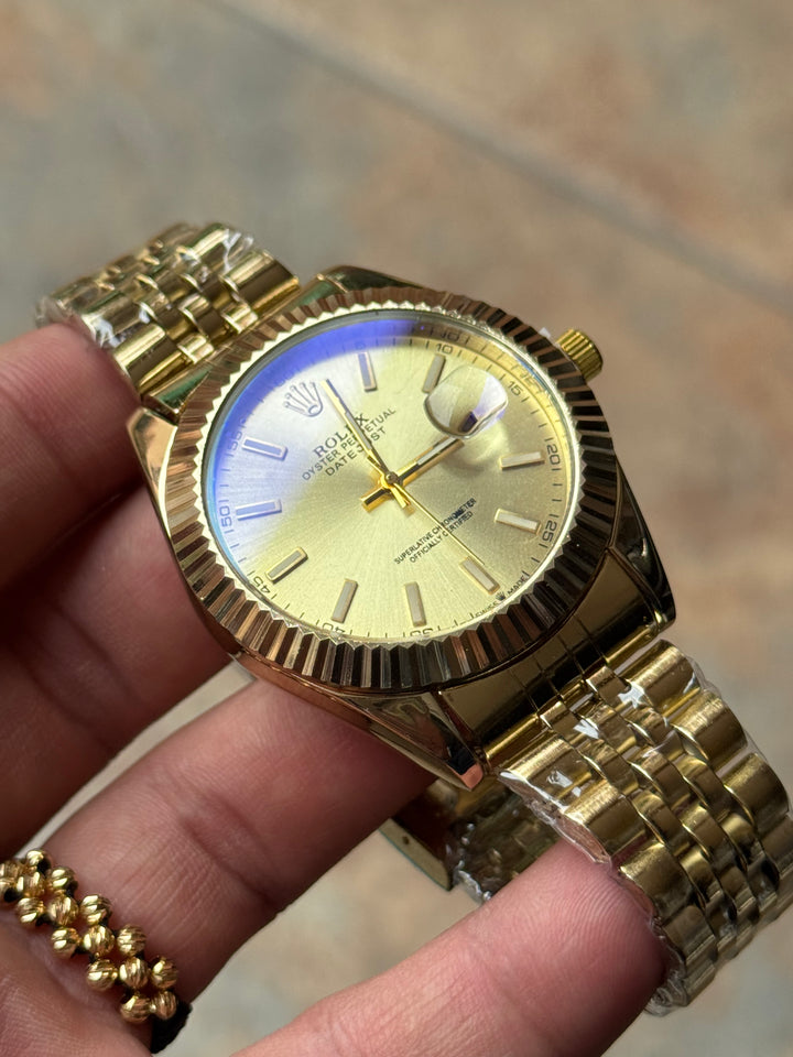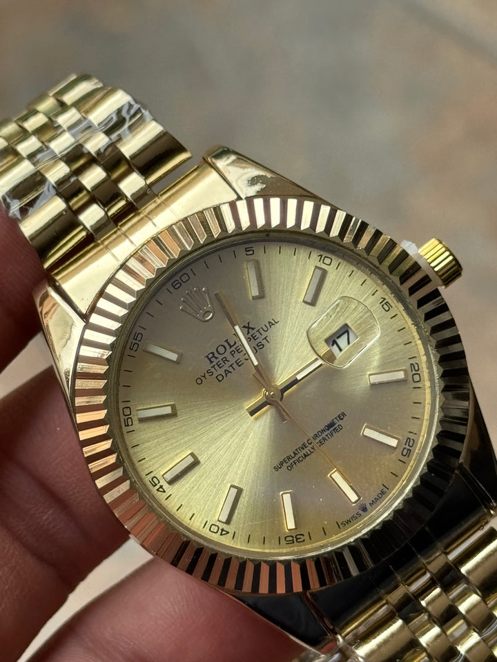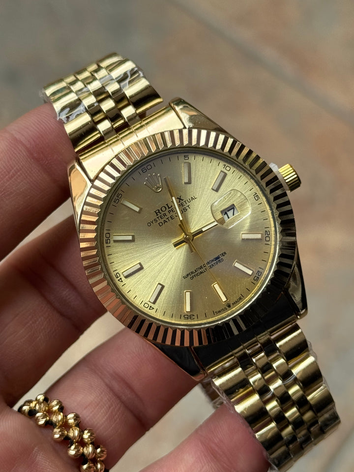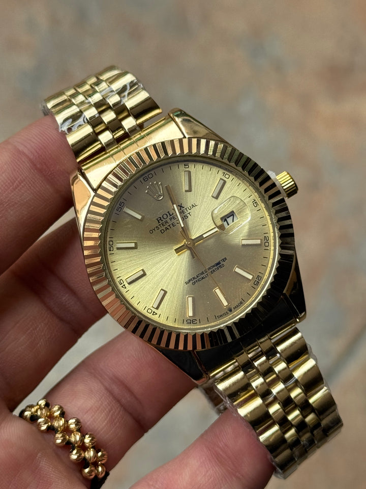 Este ROLEX dorado es el favorito de los hombres con estilo fuerte y decidido.