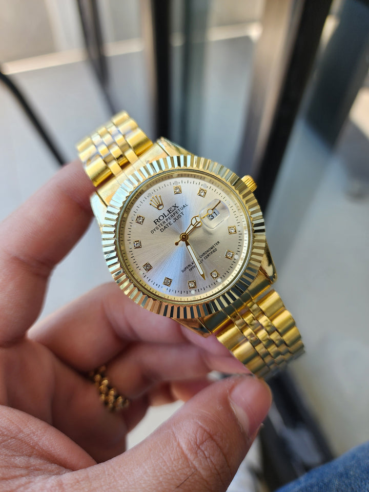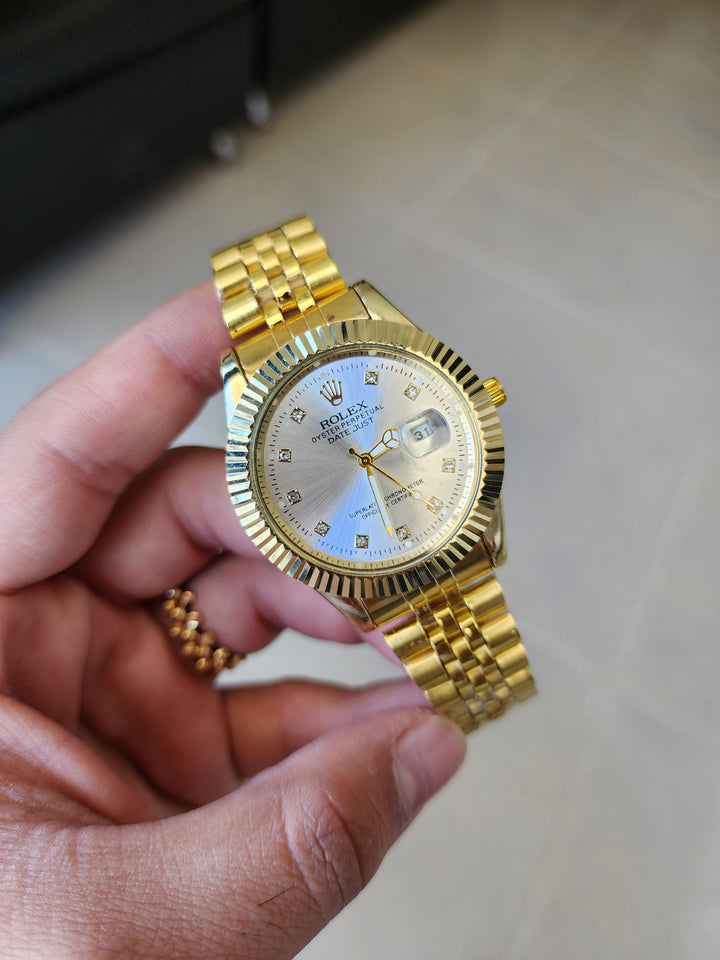 Este ROLEX dorado es el favorito de los hombres con estilo fuerte y decidido.